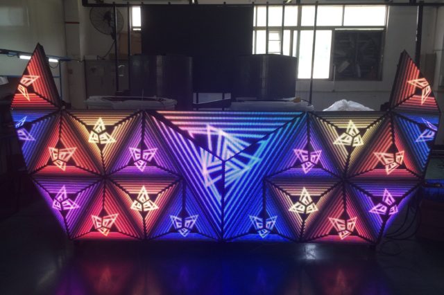 DGX社製のLEDビジョンでしたら、一際インパクトのあるDJブースにて、音楽に、光の演出も加わり、より一層盛り上がること間違いなしです。